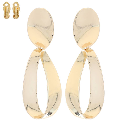 2 Tier Oval Loop Brushed Metal Drop Clip-On Earrings