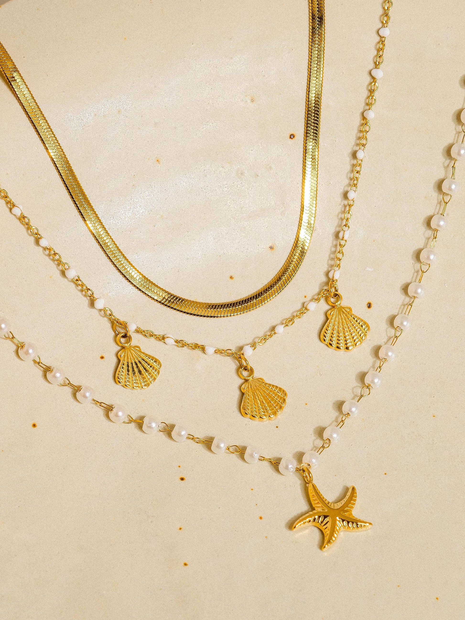 Cassis 18K Gold Non-Tarnish Shell Pearl Bracelet Set